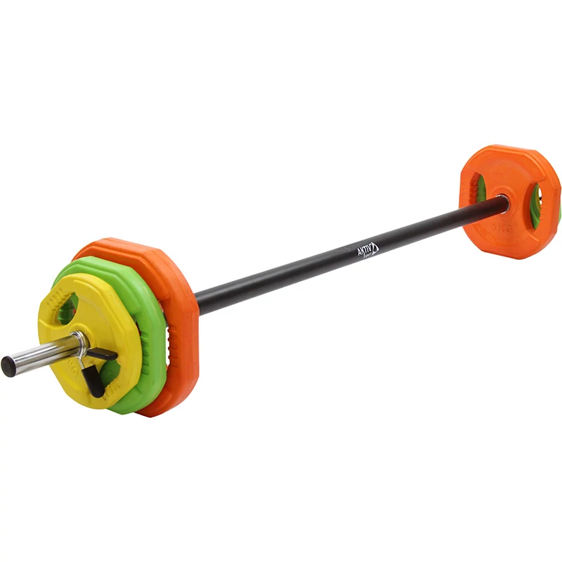 A súlyzótárcsák furatmérete 31 mm, gumis bevonata védi a talajt és a súlyt is.