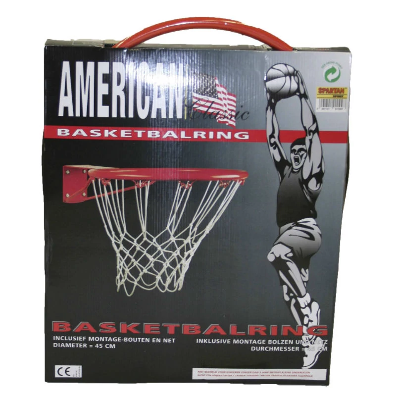 Klasszikus amerikai gyűrű hálóval rugós kivitelezésben. A gyűrű átmérője 45 cm.